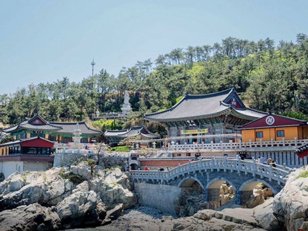 海東龍宮寺位於韓國東海岸最南端,別於多數的韓國傳統寺院都位於寂靜山中,是一座可以近距離接觸大海的水上佛堂,龍宮寺以其傳統韓國寺院的建築以及奇石怪巖的自然風光,被譽為韓國最美的寺院。