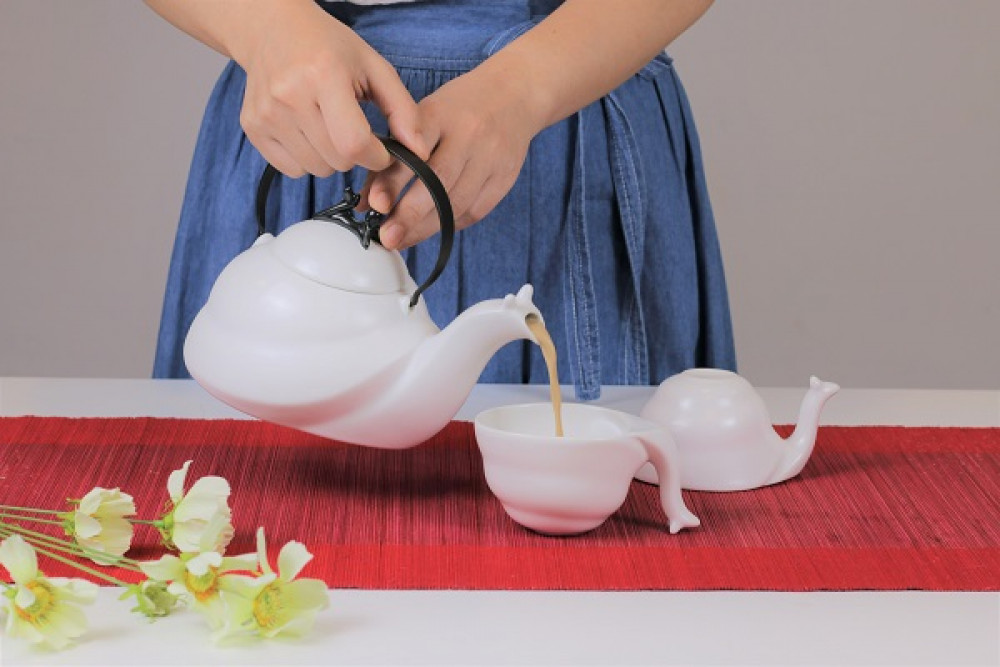 平日或週末在家,突然想喝下午茶、吃甜點或早午餐怎麽辦?鶯歌陶瓷博物館即日起推出由館員自製「我的鶯式食尚」三部曲影片。首部曲「可愛教主—果醬紅茶vs鍋煮奶茶」,使用「幸福漁人創意馬克杯」,兩個造型可愛的陶偶坐在杯緣,將茶包掛在陶偶拿的釣竿上,再加入新鮮水果製作的果醬調味。以蝸牛為造型的一壺二杯「慢活茶具組」,盛裝鍋煮奶茶,體驗蝸牛的慢活態度,一起用悠閑的生活腳步,享受午茶時光。
