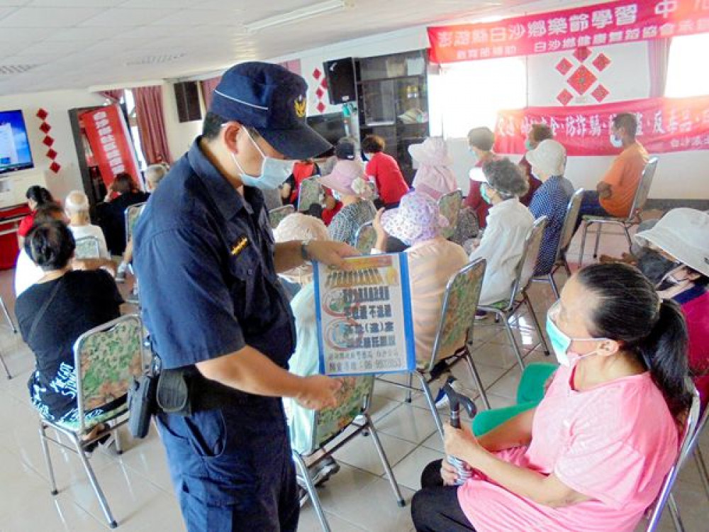 白沙鄉樂齡學習中心舉辦認識海洋活動,白沙分局白沙派出所所長鄭永林、警員張明憲前往會向社區長者宣導交通安全資訊及中秋節監察防貪宣導。鄭永林呼籲與會長者外出時,除了要注意自己的身心狀況外,並儘量避免駕駛;在晨昏外出時,應穿著亮色服裝及配戴反光配件;若騎乘腳踏車或電動代步車也須加裝閃光警示燈或反光貼條,以提醒其他用路人減速慢行及禮讓。